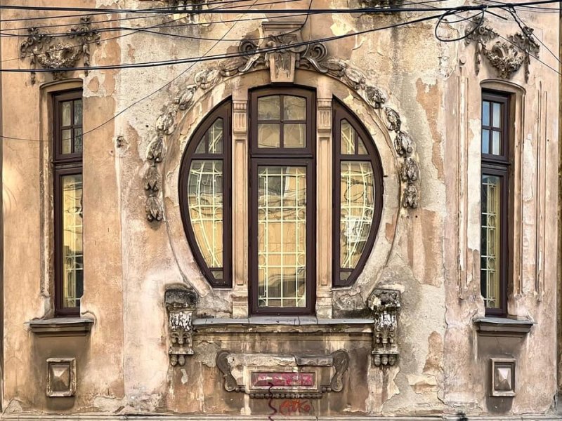 At the corner of Negustori and Paleologu streets, in the heart of a neighborhood that has seen better days, stands a house with a round window. It's not just a detail — it's almost a statement of intent. The circular eye looks straight into the intersection like an elegant monocle, and behind its glass hides stained-wood with floral motifs, best seen in the evening, when the lights inside bring them to life.