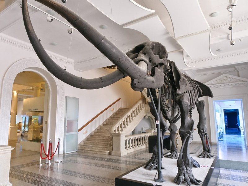 The collections are organized into eight sections: geology and mineralogy, paleontology, comparative anatomy, ethnography and anthropology, vertebrates, invertebrates, entomology, and scientific collections. One of the emblematic exhibits remains the skeleton of Deinotherium gigantissimum — discovered by the museum’s first director, Grigoriu Ștefănescu — one of the largest mammals ever to have lived on Earth.