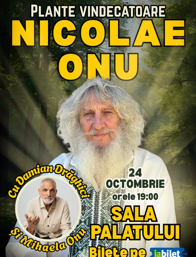 După succesul fulminant din podcastul lui Damian Drăghici, Nicolae Onu, omul care păstrează secretele ascunse ale plantelor, urcă pentru prima dată pe scena Sălii Palatului, într-o conferință extraordinară ce aduce în fața publicului cunoașterea vindecătoare a naturii, inspirație și înțelepciune pentru trup și suflet.