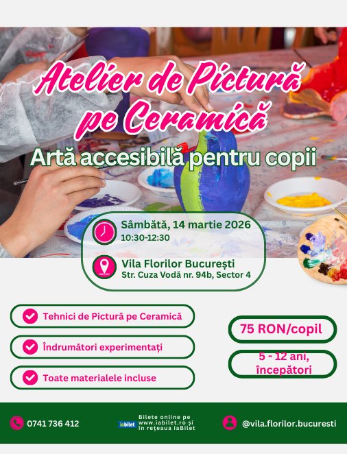 Atelierul face parte din seria Artă accesibilă pentru copii, organizată de două ori pe lună la Vila Florilor, București.