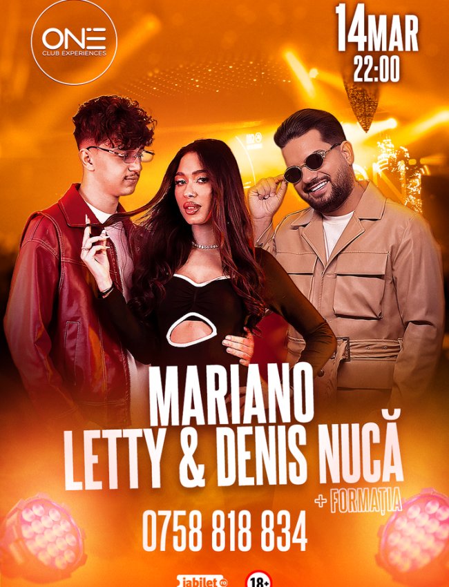 Evenimentul va fi o seară specială cu Mariano, Letty & Denis Nuca la ONE Club, pe 14 Martie, începând de la ora 22:00. Te vei bucura de muzică live și de o experiență de neuitat.