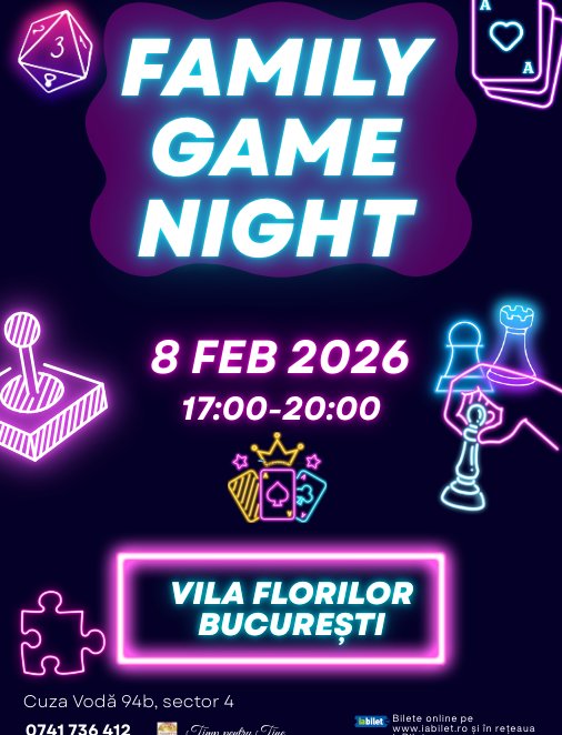 Family Game Night oferă un context în care distracția apare firesc, din interacțiune, joc și timp petrecut împreună, fără presiune și fără a urmări altceva decât o seară reușită.