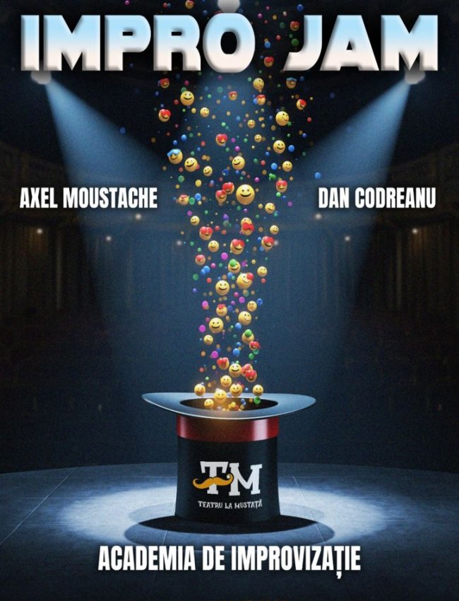 IMPRO JAM este un mix efervescent de jocuri de improvizație, scene fulger și provocări venite direct din sală.