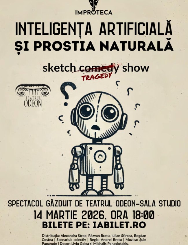 Inteligența Artificială și Prostia Naturală este un spectacol produs de echipa de actori a Teatrului Improteca. Este o comedie inspirată din realitatea afectată de epoca digitalizării, o realitate deja defectă, de dinainte. O comedie riscantă, la granița dintre comedie și tragedie.