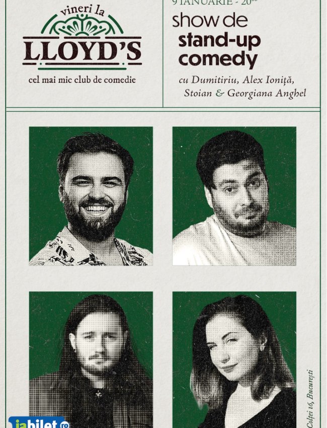 Lloyd's: Stand-up comedy cu Gabriel Dumitriu, Alex Ioniță, Teo Stoian și Georgiana Anghel