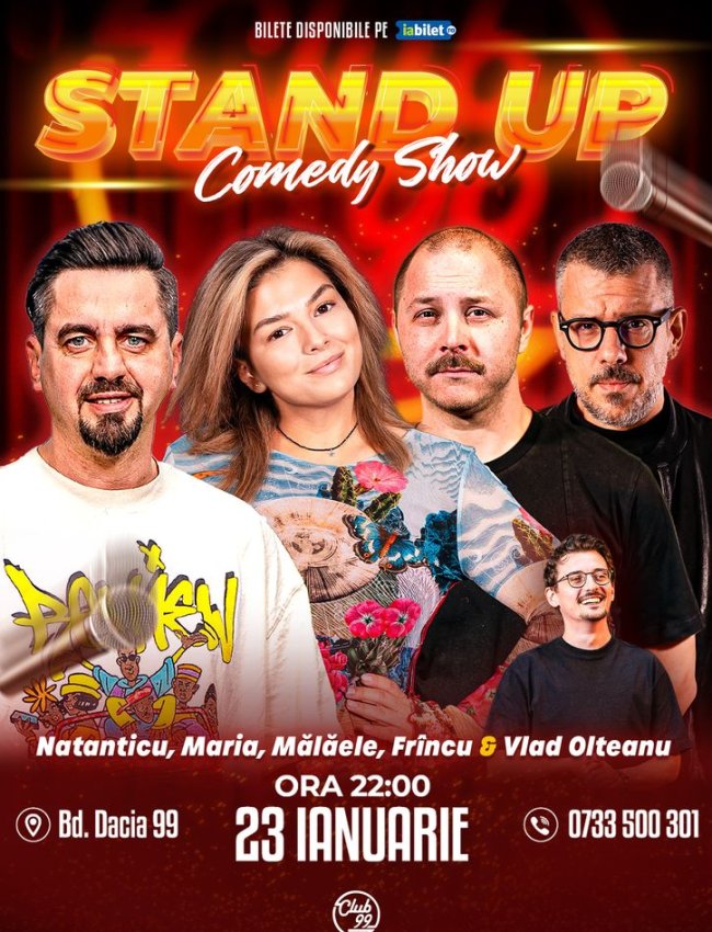 Stand-up Comedy cu Natanticu, Maria Popovici, Mălăele, Frîncu - Vlad Olteanu la Club 99