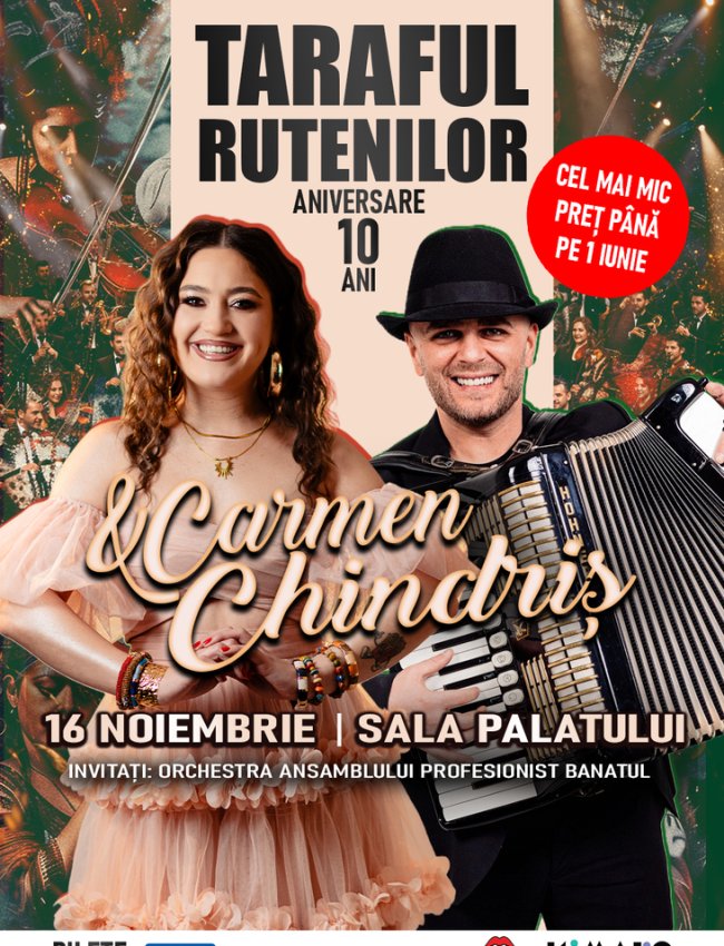 După un deceniu în care au redefinit muzica de petrecere și au cucerit topurile cu hituri precum „Ziua în care tu m-ai sărutat”, Taraful Rutenilor & Carmen Chindriș marchează această bornă simbolică printr-un spectacol de anvergură, conceput ca o celebrare a pasiunii și a legăturii profunde cu fanii.